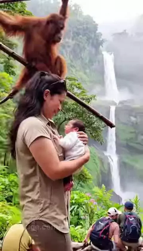 When a silverback climbs down to observe a human baby, it is usually an act of calm curiosity—not aggression.
