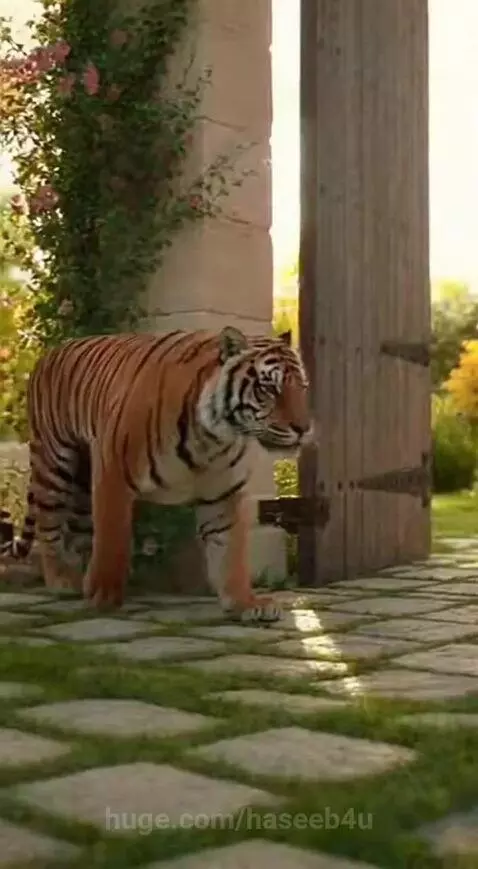 A tiger calmly walks through an open garden gate... #aishorts #shorts #wildlife