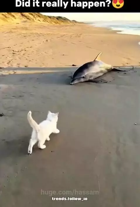 White cat and golden dogs helps to the helpless Fish