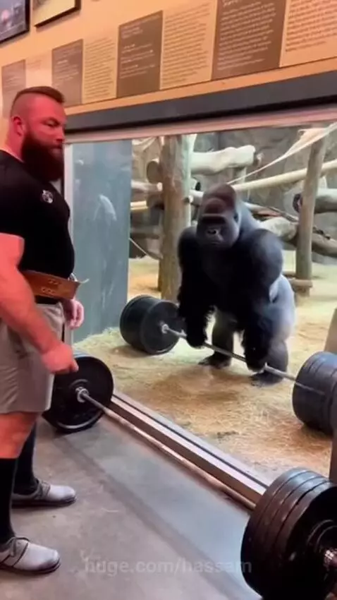 Lifting weights competition with gorilla 🦍