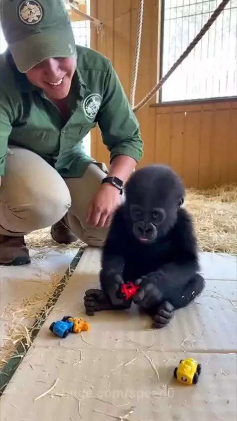Women play with grolia baby