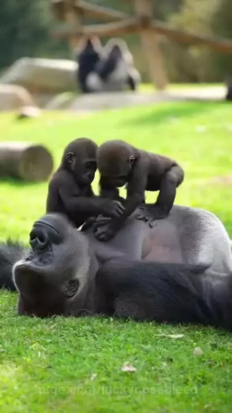 Gorilla baby sitting on a dad like play ground