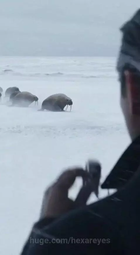 Laza Panther strikes a group of giant walruses