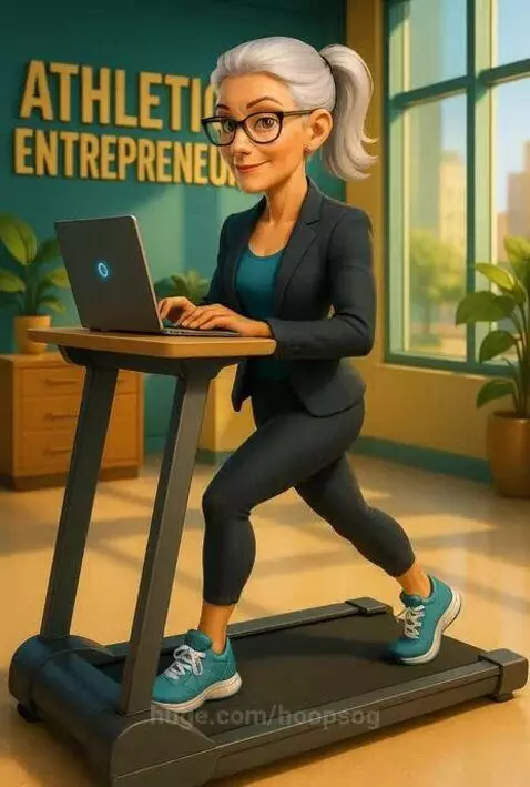 Ageless Female CEO treadmill and work