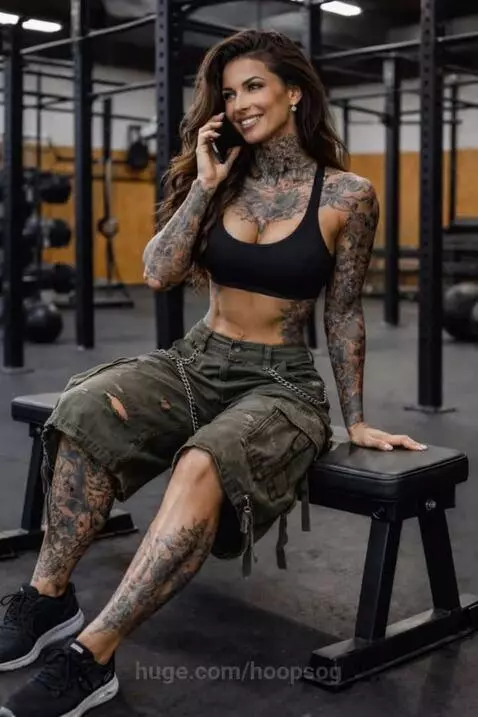 Sexy on the phone in the gym about to get her daily routine workout