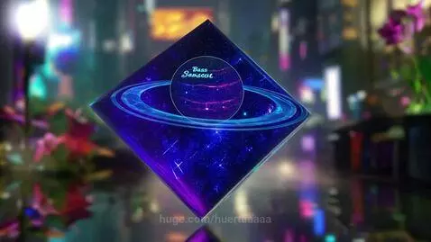 Generate a diamond decorated in cyberpunk style. The diamond's wrapper is a solar system. The inscription "Bass Lachost" is on the solar system's apex. The backdrop is a non-magical city with cyberpunk flowers