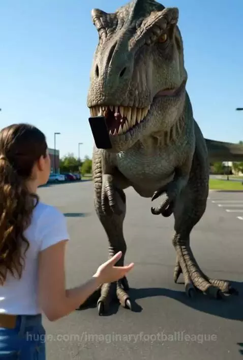 A 🦖T Rex was sighted at a grocery store parking lot stealing a smart phone !