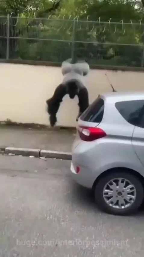 Breaking News: A gorilla escapes from a zoo and steals a car parked next to it.