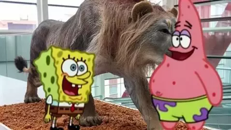 A Spongebob talking to a Patrick Loves Eurasian Cave Lion.are the love extinct animals