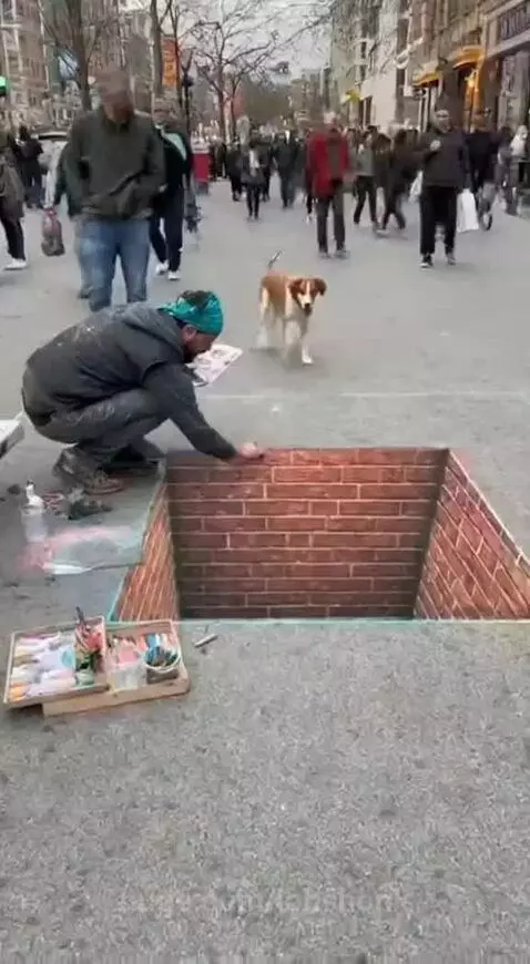 Dog pretends to enter a pit