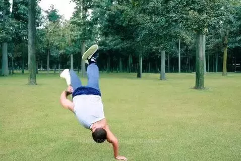 Man doing somersault in park
