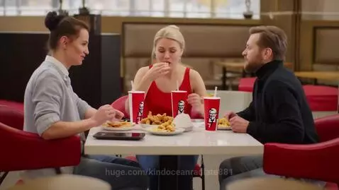 Hunyuan Video Prompt: Фотореалистичное изображение трех пушистых котов за столиком в ресторане KFC. Коты с реалистичной текстурой шерсти разных пород (рыжий мейн-кун, серый британский короткошёрстный и чёрно-белый оцикет) сидят на красных пластиковых стульях. На столе из imitation wood расположены: картонная коробка с логотипом KFC, из которой видны обгрызенные кусочки куриных крыльев с хрустящей кожицей, три ярко-красных стакана с колой, со следами пены и конденсата. Освещение тёплое, как в ресторане фастфуда, с отражением на столе и характерными тенями. Фон слегка размыт, с видом на кассу и рекламные постеры KFC на стенах. Фото в стиле документальной фотографии с высокой детализацией."