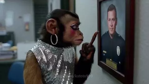 Anthropomorphic monkey in makeup and sparkly dress, standing in a police station and threatening the middle finger of the police professional photo, high quality, hyper-detail