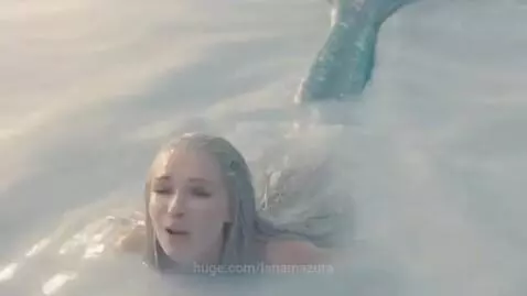русалка плавает в полупрозрачном молоке, выпрыгивает, поет, ныряет обратно. словно художественный фильм, реалистично, красиво, без артефактов.