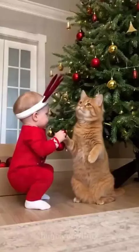 Ginger and Baby decorate the tree