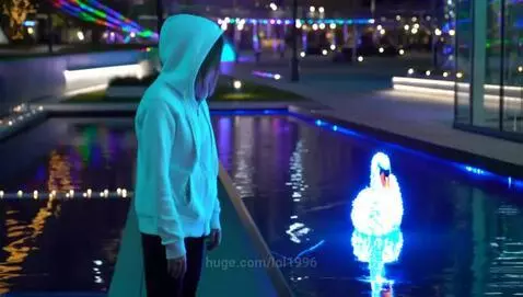 Luma Dream Machine Ray2 Prompt: Style: 2099 year. Cyberpunk cinematic short film, ultra-detailed, photorealistic, realistic lighting and materials, volumetric light and shadow, soft depth of field, HDR, 8K quality. Color palette: deep cyan, magenta, violet and cold neon tones with soft ambient haze. Atmosphere: moody, reflective, slightly melancholic but filled with inner strength. Textures: wet asphalt, glass reflections, flickering holograms, metallic surfaces, neon bokeh. Camera setup: Anamorphic lens, cinematic framing, shallow focus, low-angle or mid-shot depending on emotion, realistic motion blur, light flares and particle effects. Optional drone sweeps or slow panning for environmental shots. Lighting: Mixed neon and ambient backlight with secondary reflections. Use red or purple accent lights for emotional tension, blue or teal for calm introspection.Hooded young woman standing near pond. In the city pond—a swan of light. Created by AI for comfort. I touch the water. It looks at me. We’re both ghosts. But we’re beautiful ghosts.