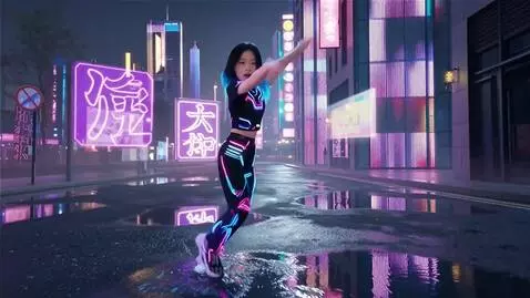 Wan 2.5 Preview Prompt: A ultra-detailed photorealistic cyberpunk dance scene set on a wet asphalt street at night. A 15-old-age girl performs synchronized choreography under glowing neon lights. The environment is rich with reflections: puddles on the ground mirror the vibrant colors of signs and holograms from nearby buildings. The dancer wear high-tech cyberpunk outfit with glowing accents, some with animated LED patterns that pulse in rhythm with the music. Girl movements are expressive and energetic, blending elements of K-pop and freestyle. The camera glides smoothly around girl, capturing dynamic angles and close-ups of their faces and costumes. Occasional slow-motion shots emphasize the fluidity of their motions. The lighting changes subtly throughout the performance, casting different hues — purples, blues, pinks — across the scene. The atmosphere is immersive, futuristic, and emotionally charged, evoking a sense of awe and rhythm. The background includes neon signs in Korean, flickering billboards. The dancer expressions are confident and passionate, fully immersed in the music and the moment. Focus on style, movement, and mood.