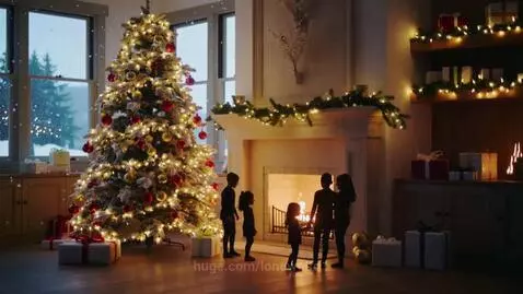 Kling 2.5 Turbo (pro) Prompt: Cinematic Christmas scene, warm golden lighting, cozy winter atmosphere, gentle snowfall, beautifully decorated living room with Christmas tree full of lights and ornaments, fireplace glowing softly, family silhouettes laughing in the background, cinematic depth of field, slow camera push-in, subtle lens flare, ultra-realistic textures, soft film grain, 4K quality, festive mood, magical realism, holiday vibes, high detail, smooth motion, professional cinematic look