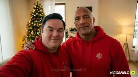 Kling 2.5 Turbo (pro) Prompt: First-person view: I ( first person from the left) am seated in a cozy Christmas home, looking at the camera, with Dwayne “The Rock”( person closest to the fire place)is already sitting next to me. Dwayne “The Rock” is talking to me, I say nothing. No one leaves or morphs; all seated people remain in place I and the environment remain consistent. Cozy Christmas atmosphere, smooth natural movement, consistent camera angle, slight natural motion allowed from interpolation, realistic lighting and decorations. All faces must remain exactly the same as in the reference pictures, with no changes to facial features, expressions, or identity.