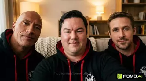 Kling 2.5 Turbo (pro) Prompt: First-person view: I am seated in a cozy home, looking at the camera. Dwayne “The Rock” Johnson (bald guy) and Ryan Gosling (actor) are next to me. The Rock is talking to me, while I and Ryan remain silent. No one leaves or morphs; all people remain in place. The directions of the others are relative to my point of view: from my perspective, The Rock is on one side, Ryan on the other. Cozy, natural indoor environment with realistic lighting, soft decorations, warm textures, neutral furniture, intimate living room setting. Slight natural motion allowed (e.g., subtle head gestures or posture shifts from The Rock) from interpolation; smooth, continuous movement. Camera angle and environment remain consistent throughout the scene. All faces must remain exactly the same as in reference pictures, with no changes to facial features, expressions, or identity. Ultra-photorealistic, documentary style, realistic skin texture, natural imperfections preserved. Warm ambient lighting, soft shadows, cozy contrast, subtle depth-of-field, natural reflections on surfaces. Natural, realistic first-person perspective; I (middle) and Ryan do not speak, move, or react vocally.