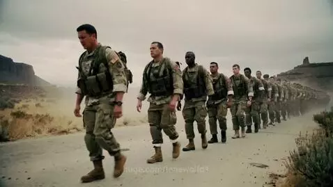 Kling 2.5 Turbo (pro) Prompt: A realistic, seamless loop of exhausted US Army soldiers marching in formation on a long, dusty road. The soldiers are adults, visibly fatigued and strained, showing tension and pain on their faces and bodies, carrying standard modern military gear and backpacks. Their uniforms are current US Army camouflage (OCP/Operational Camouflage Pattern), slightly worn and dusty, boots scuffed. The background is a barren landscape with muted colors, emphasizing the long journey they have endured. The camera is at mid-level, slightly front-left, tracking their movement as they march. Dramatic lighting highlights shadows and muscle tension, cinematic and photorealistic. No children, no caricatured soldiers, no outdated uniforms, focus on gritty realism and emotion. Seamlessly loopable with no visible cuts.