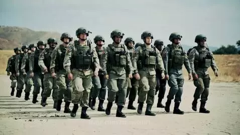 Kling 2.5 Turbo (pro) Prompt: Seamless 5-second looping video of a full platoon of US Marines marching in perfect formation, dozens of soldiers in multiple rows, wearing current digital camouflage uniforms with helmets and modern gear, synchronized steps, cinematic mid-body to wide perspective to capture entire formation, realistic lighting, ultra-detailed textures, subtle depth of field, begin frame identical to end frame, smooth continuous motion, slight camera parallax for realism, cinematic color grading, 30fps, 4K resolution, ultra-realistic
