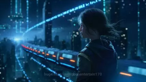 Kling 2.5 Turbo (pro) Prompt: Scene . Waiting for the Train. A cinematic ultra-detailed photorealistic short scene.Cyberpunk,2099 year. Medium shot from behind. The hooded young girl stands near the edge of the platform, watching data lines shimmer across the skyline. The camera moves slowly around her silhouette as a monorail approaches from the horizon, glowing red-blue. Wind lifts her hair slightly; ambient sound of turbines fades in. 5 seconds, cinematic motion, shallow depth, dreamlike tone.
