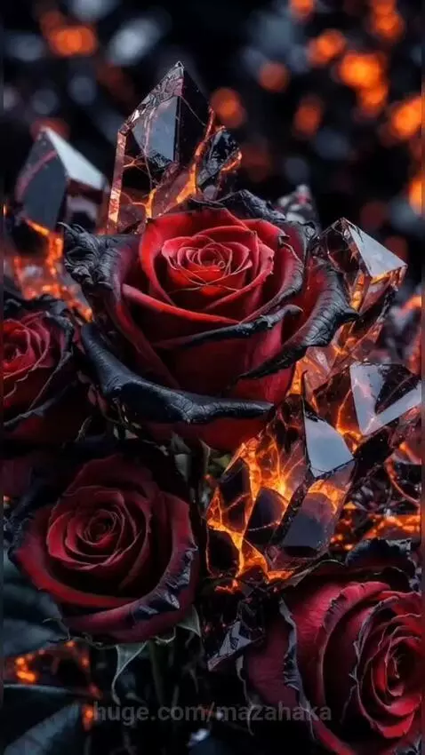 🌹 Visuals: Fire-infused roses and crystalline petals