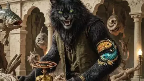 Behemoth the cat fixes a primus stove, then throws it into the camera