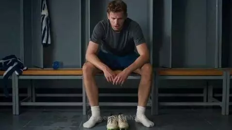 sora 2 Prompt: A muscular soccer player siting in the locker room after a game. He is wearing shorts and socks. He is looking down to his soccer cleats in between his feet and says with a british accent "that's nasty". The camera zooms in the cleats to show inside an impossibly small man looking up.