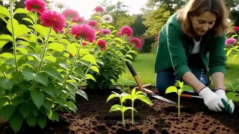 PixVerse v5 Prompt: Первая секунда Крупный план: руки в перчатках бережно подготавливают грунт на грядке, видны садовые инструменты рядом. Вторая секунда Средний план: человек наклоняется, аккуратно кладёт рассаду в лунку, вокруг зелёные кусты и цветы. Третья секунда Крупный план: пальцы присыпают рассаду землёй, детали почвы и корней, солнечный свет пробивается сквозь листву. Четвёртая секунда Разворот камеры: человек расправляет стебли, легкий ветер колышет листья, слышно щебет птиц, общий вид сада. Пятая секунда Улыбка садовода, одобрительный взгляд на посаженную рассаду; кадр плавно отдаляется, показывая часть ухоженного участка и солнечную атмосферу. Важные элементы Свет: мягкий солнечный. Звук: щебет птиц, легкий ветер. Цвет: насыщенная зелень, естественные оттенки земли. Каждая секунда выделяет ключевой этап посадки: подготовка, посадка, присыпка, уход, итоговый результат и эмоция садовода.