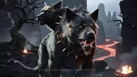 Пёс Цербер в Древнегреческом Аиде. Атмосфера мощи и страха. Кинематогрофический реализм, 8K
