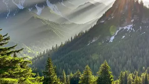 Kling 1.6 (pro) Prompt: The serene mountain forest landscape gradually transforms into a geometric mountain design, as "MaxyLight" morphs into bold white "LATEMOTIV" letters, sunlight shifting across peaks while maintaining natural harmony, the camera slowly zooms out to reveal the full symbolic transition.