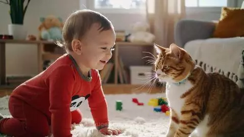 Baby funny conversations with cat