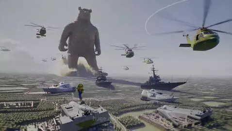 MiniMax Director Prompt: 150 kilo-meter Giant Mario, cinemactic, life, land, normal 800 feet long battleships while battleship are minature compare to Giant Mario, speck helicopters, Giant Mario can crush the every lands or such, 150 kilo-meter Giant Mario rampaging, Millatry use Giant Mario little speck 5.9ftbro Luigi to lure Giant Mario out of destruction and GiantMario spots Luigi and come after Luigi, Luigi runs away from 150-kilometer Giant Mario it's successful from militarty tatics