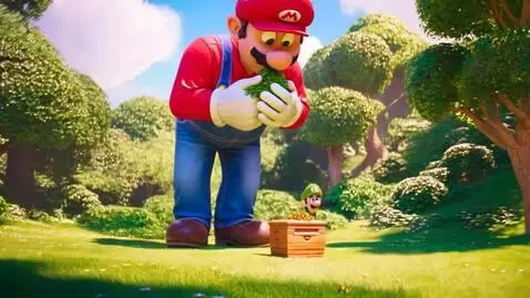 MiniMax Director Prompt: 100ft sized Giant Mario eating honey, clever, 100ft sized Giant Mario wears cotton red clothing, blue demin dungarees, white cotton gloves and leather steel toed workboots, forests, beehive is only 2ft, is too tiny for Giant Mario to pick up an beehive is 2ft sized but Giant Mario didn't care,GiantMarioeatsanchunkofbeehive,biggerthegiantmariothemorebeehiveistiny,5.9ftLuigihelpwithhisgiantbigbro100ftGiantMario,Luigiwearsgreencottonclothing,whitecottongloves,navybluedemindungareesandchocolatecolouredsteeltoedworkboots