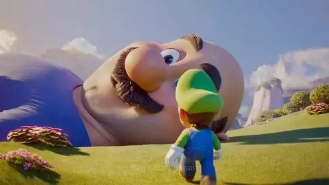 MiniMax Director Prompt: 3600 feet sized Giant Mario is the 3600 feet sized giant sleeping next to his human brother 5.9feet Luigi, Luigi is on the weight of Giant Mario, size interaction logic, 3600ft giant realistic, Giant Mario eyes move to follow as Giant Mario look at Luigi, close up on 3600 feet sized Giant Mario face. Luigi stand on top of Mario's big nose.