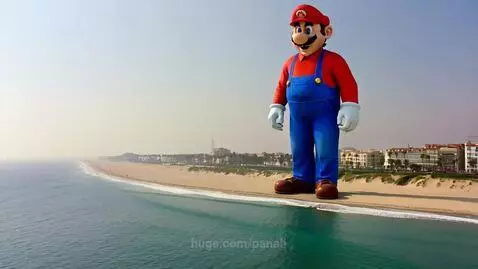Giant Mario on the Beach