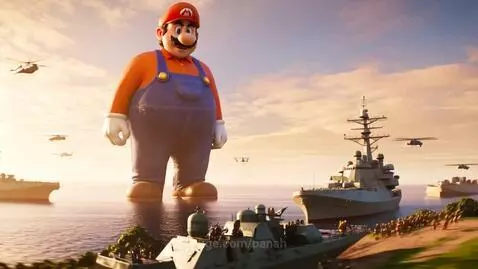 MiniMax Director Prompt: 150 kilo-meter Giant Mario, cinemactic, life, land, normal 800 feet long battleships while battleship are minature compare to Giant Mario, speck helicopters, Giant Mario can crush the every lands or such, 150 kilo-meter Giant Mario rampaging, Millatry use Giant Mario little speck 5.9ftbro Luigi to lure Giant Mario out of destruction and GiantMario spots Luigi and come after Luigi, Luigi runs away from 150-kilometer Giant Mario it's successful from militarty tatics
