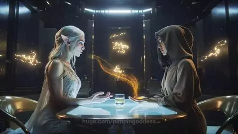 Kling 2.5 Turbo (pro) Prompt: A cinematic ultra-detailed photorealistic short scene. Cyberpunk, 2099 year. Virtual Reality. No helmet. No VR-glass. No phisical connector. Luxurious virtual lounge, golden glow, fantasy elf woman client sits across a holographic table, hooded young woman listens calmly, faint data streams between them.