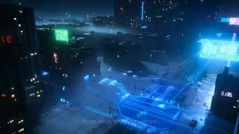 ultra-detailed cinematic aerial view of cyberpunk megacity dissolving into luminous network streams of data, neon streets turning into glowing circuits, camera slowly zooms out, energy flows pulsating, sense of reality dissolving, photorealistic, volumetric light, soft fog, deep emotional tone, 8k, cinematic composition