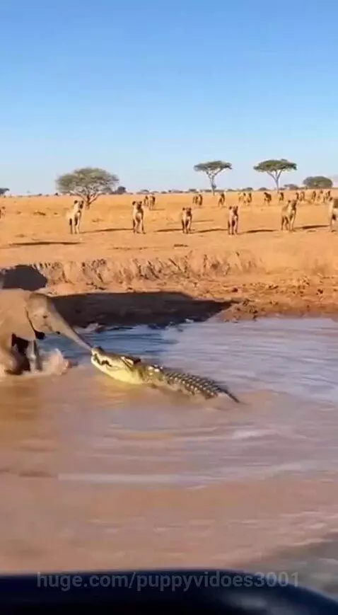 elephants filig crocodile to save har calf