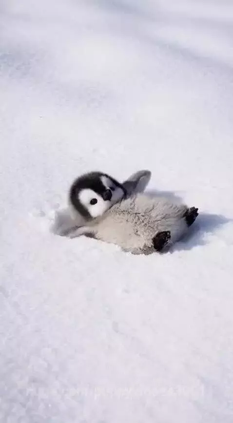 cute baby penguin laying on ice