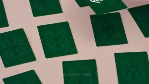 Luma Dream Machine Ray2 Prompt: A top-down cinematic view of a table covered with 9 green-beruzovy colored cards, neatly arranged in a scattered but elegant pattern. Each card has a subtle decorative pattern on its outer surface, while the inside (revealed when picked up) is clean and light-colored with glowing text: “QUEST”. A realistic human hand slowly reaches in and gracefully picks up one of the cards. As the card is lifted and slightly opened or turned, the camera focuses on the glowing text inside. Soft lighting, slow-motion effect, shallow depth of field. Duration: 8–10 seconds.