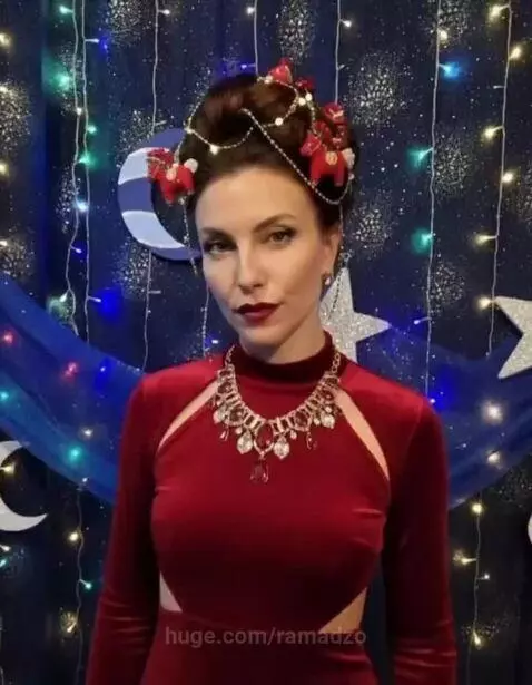 Animated the photography with New Year Mood and snake is living. In fashion dress with new year hair style