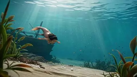 Seedance 1.5 Pro Prompt: AI Video of Render a photorealistic 3D underwater scene (4K, 60 fps). A mermaid with detailed scales and flowing hair dives near the Dominican Republic shore beach, carefully picking up pearls from the sandy edge. Marine life surrounds her: schools of fish, swaying seaweed, rays of sunlight filtering through the water. Suddenly, from the shadow of the wreck, an anglerfish appears — realistic textures, bioluminescence, sharp teeth. The mermaid turns, makes eye contact, and calmly approaches. She kisses the anglerfish gently say " Hi my name is Sirena Rodriguez nice to meet you. A subtle magical effect (soft glow, swirling particles) envelops the creature, and it gradually transforms into a humanoid merman with elegant fins and calm eyes. They exchange a look and swim side by side toward the surface. Cinematic lighting, realistic fluid dynamics, high detail. Music of Rome Santos plays.