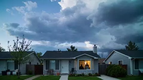 Kling 2.5 Turbo (pro) Prompt: A time-lapse of clouds hanging over houses; the camera slowly zooms in on the window of a lonely apartment. A window in the house, silhouettes of residents behind it; the scene shows that people are hiding from the weather.