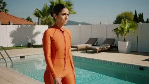 Woman in Orange Hydrasuit by Pool
