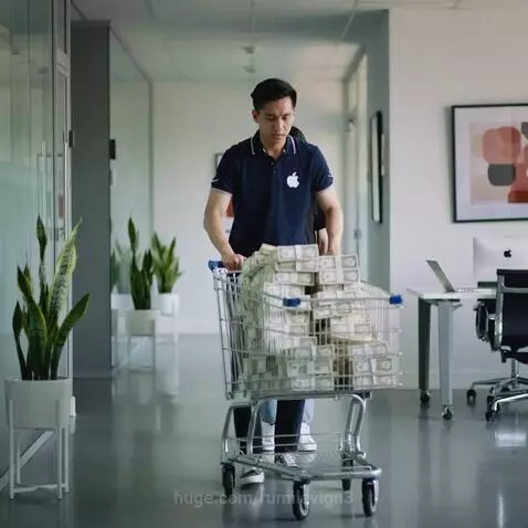 generate how a employee from "Apple" drops a lot of money from a cart on a employee from "Google"