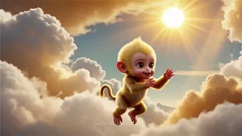 “Adorable baby Hanuman flying toward the sun thinking it’s a fruit, surrounded by clouds, glowing golden sky, innocent smile, soft cinematic lighting, warm color tone, hyper-realistic yet divine, cute baby form”
